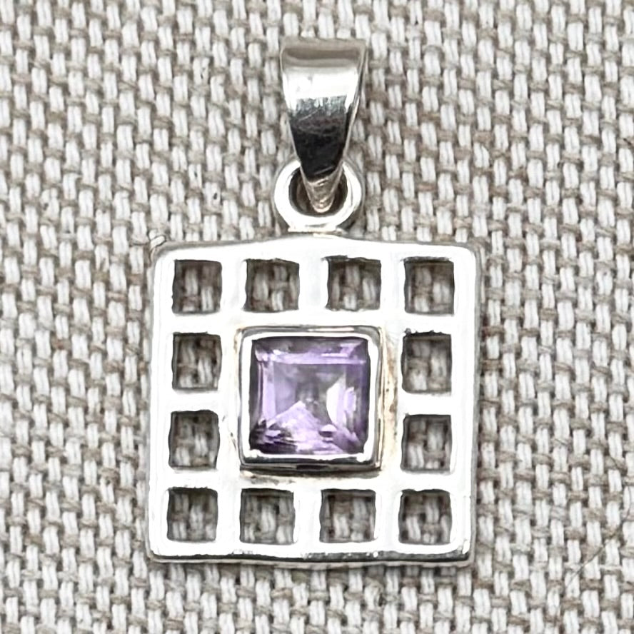 This elegant small square pendant features a beautiful amethyst gemstone set at its centre. Expertly crafted in sterling silver and hallmarked for Historic Originals - Edinburgh 2000.