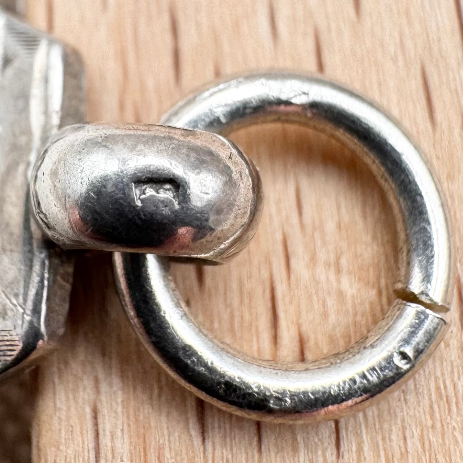 As well as the hallmarks, the reverse is stamped with a Registered Design number 224921. This design was registered in 1894 by William Rabone Haseler and Frank Haseler, trading as C E Solomon and Company, Jewellers, of 8 Hylton Street, Birmingham. The maker's mark is 'WHH' which was used by William Hair Haseler until 1910 at which the mark was changed.