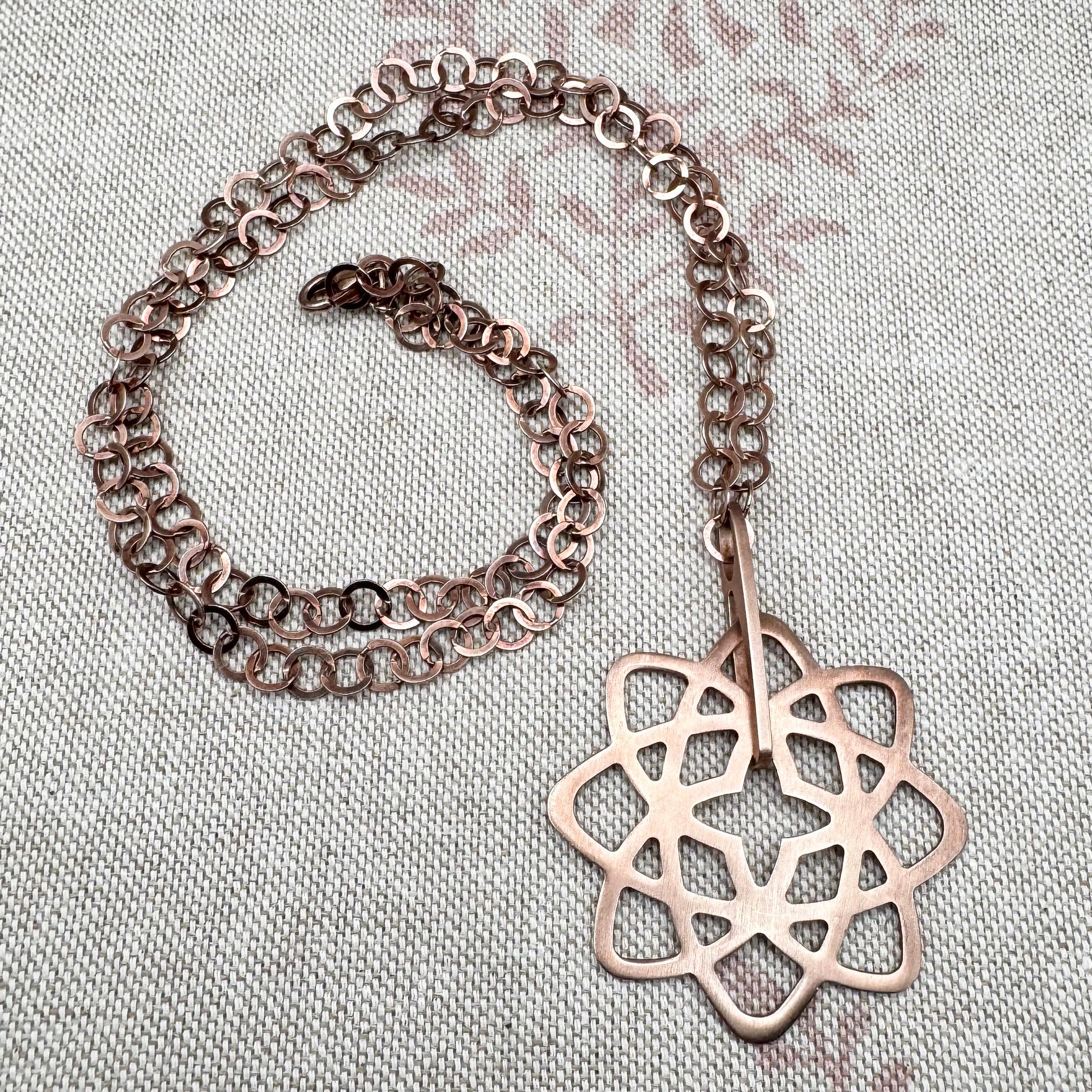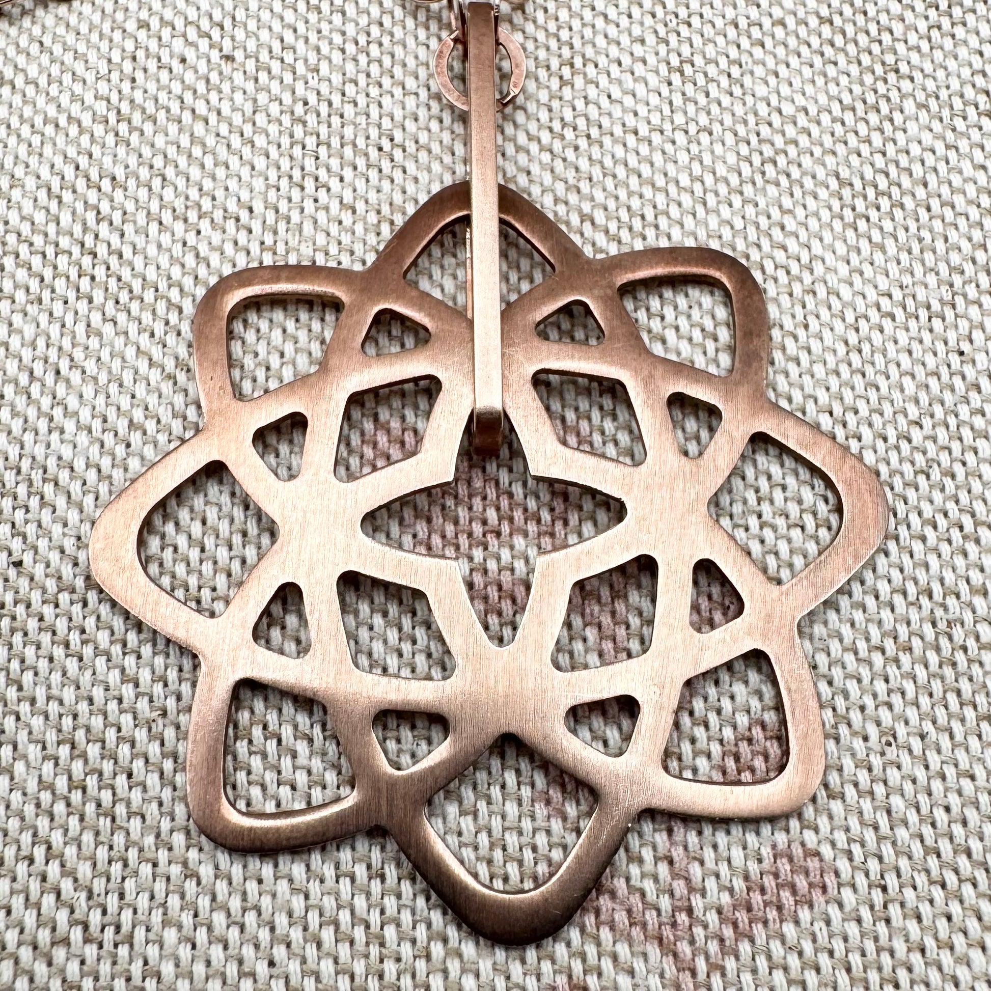 The lightweight yet eye-catching chain offers effortless wear, while still making a bold statement. At its centre hangs a beautifully crafted geometric pendant, designed to catch the light and deliver a subtle sparkle with every movement.