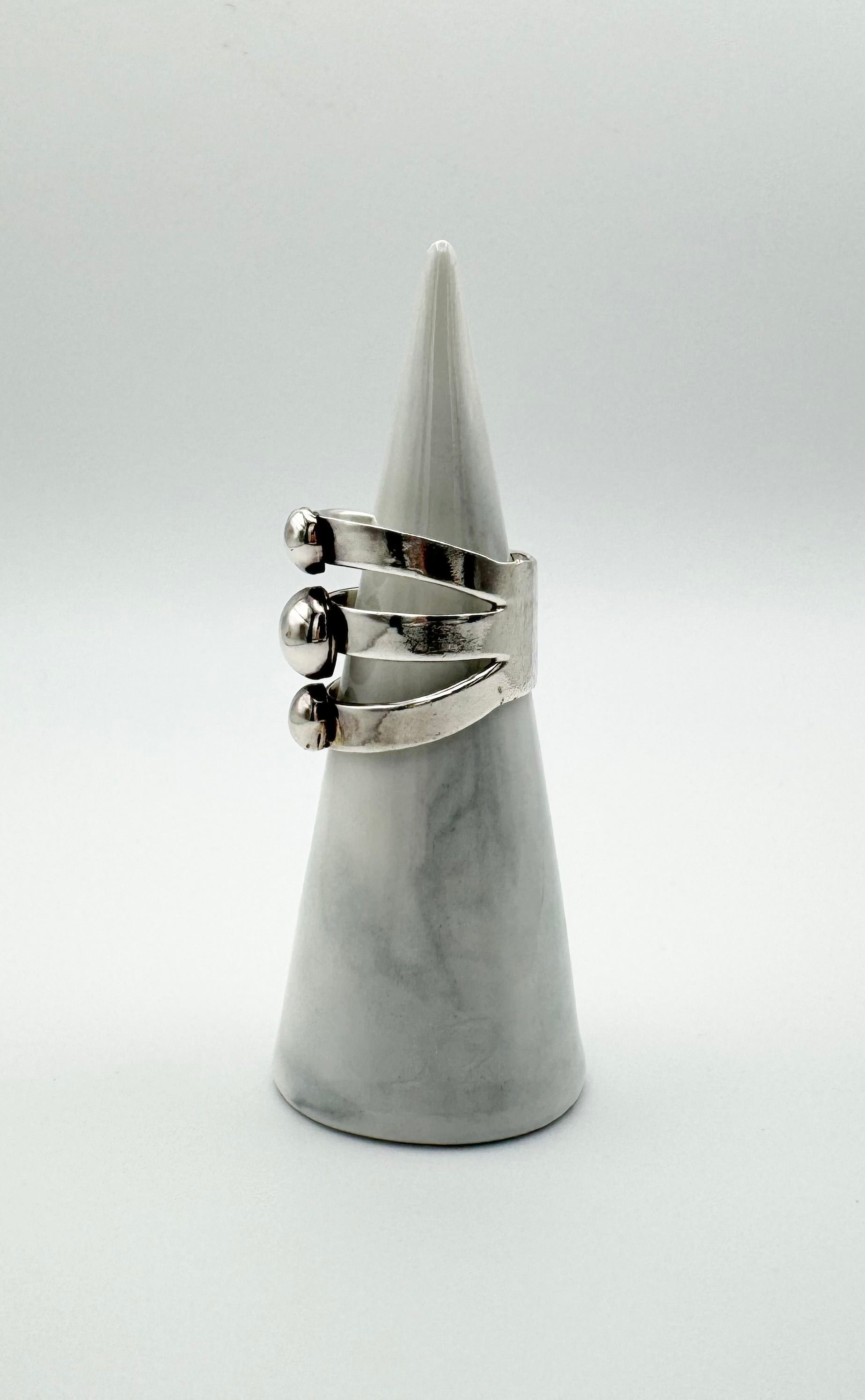 This ring features three bands with decorative balls on the surface.