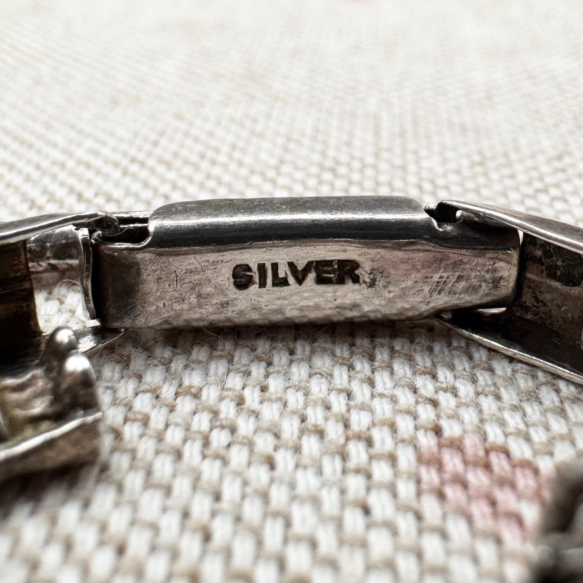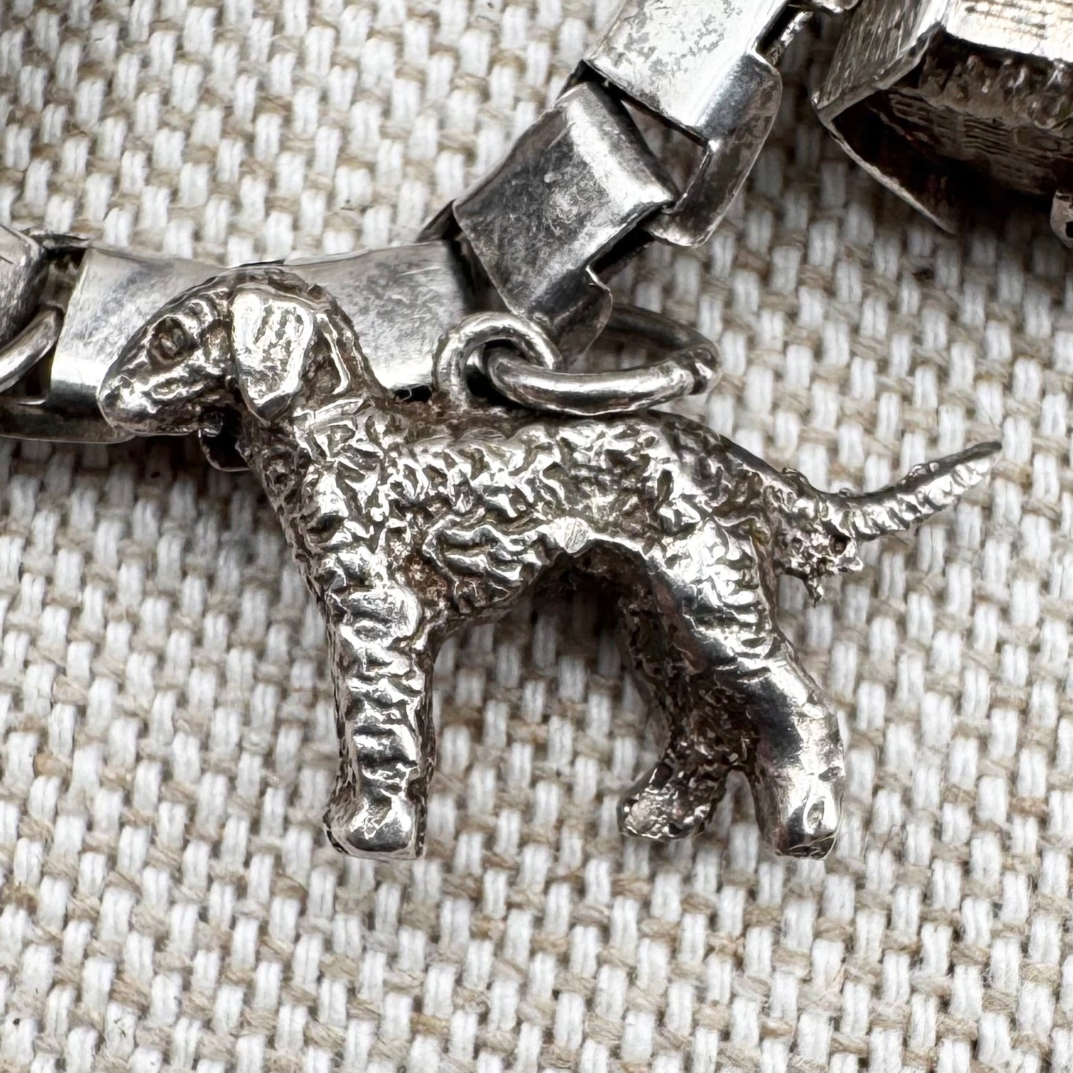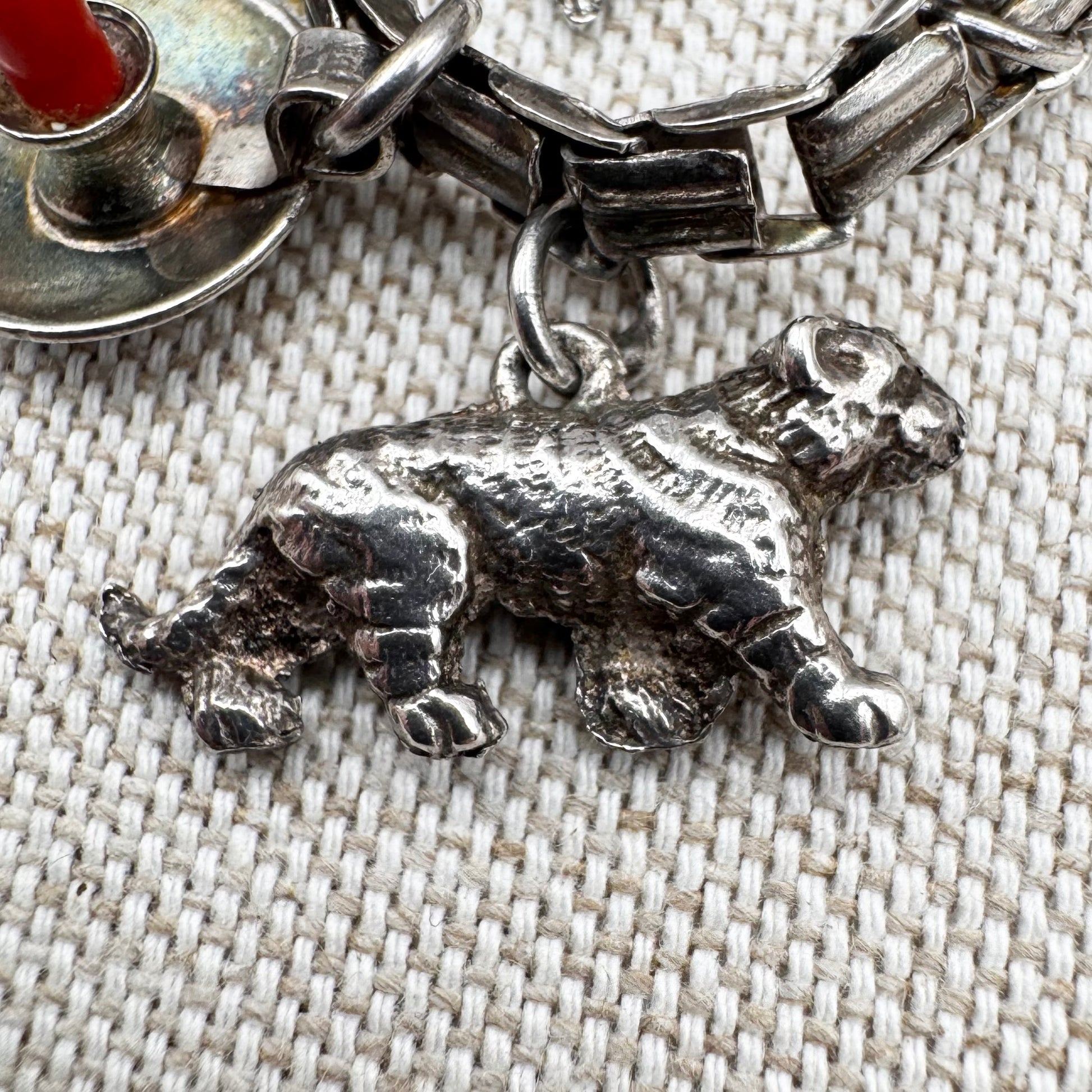 This vintage silver bracelet has an easy, nostalgic charm about it. The links are hung with a mix of tiny silver keepsakes that jingle lightly as you move, giving the piece a sense of life and playfulness. It’s the sort of bracelet that feels like it’s carried stories with it, the kind you can imagine being added to over the years. A little treasure in its own right.