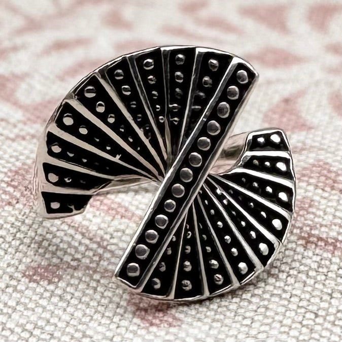 Fan-inspired statement ring – minimalist geometric design, size P/7