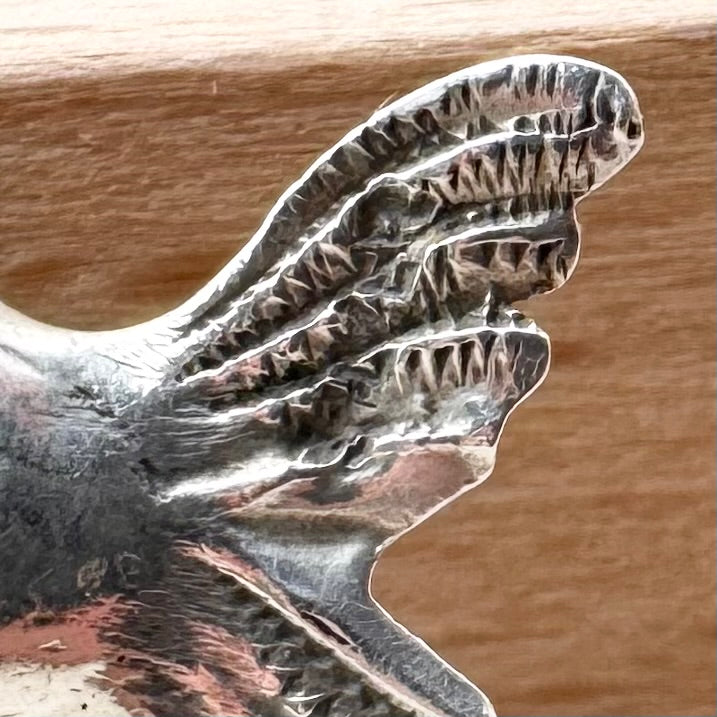 There is a faint ‘SILVER’ stamp on one side of the fish’s tail. Chain not included.