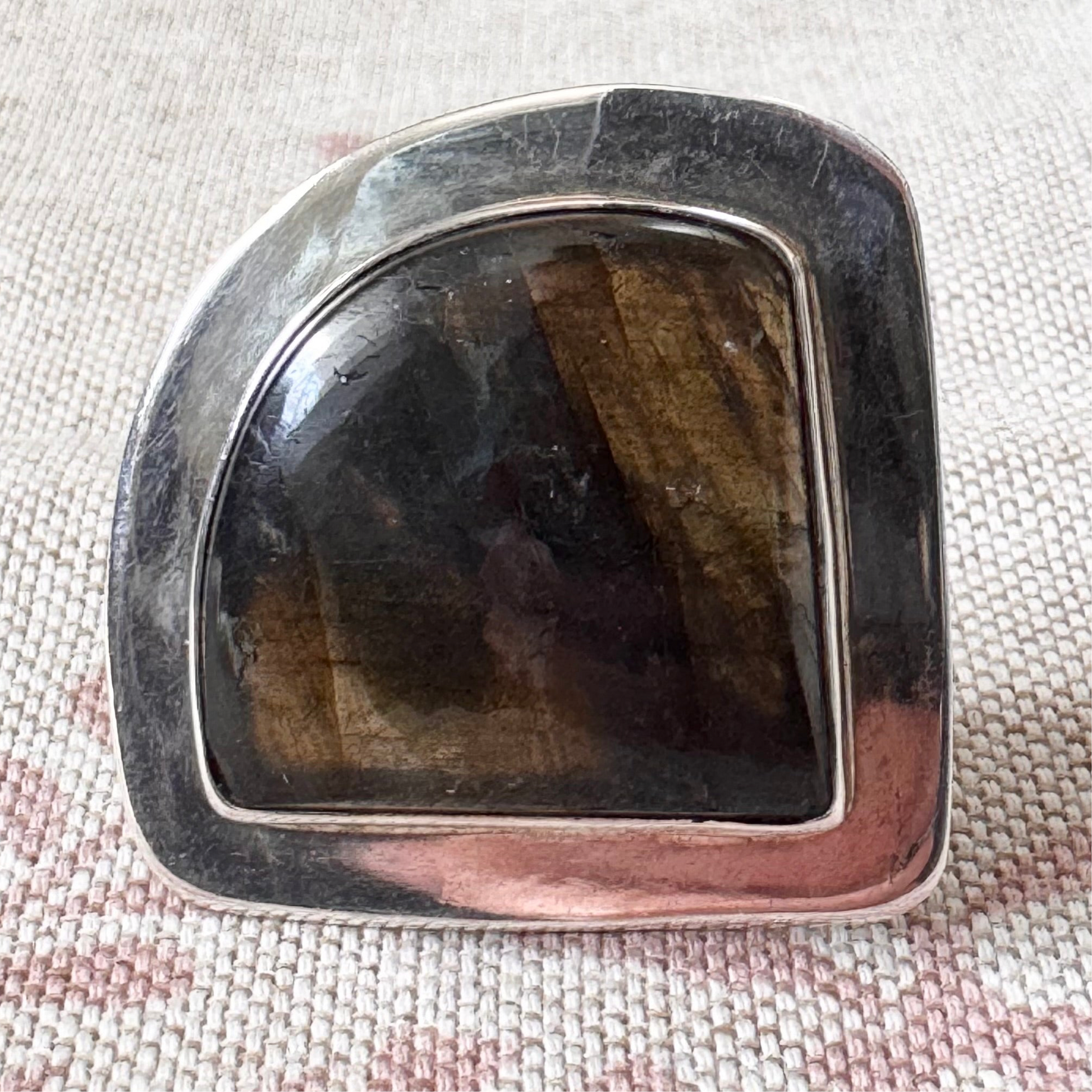 Triangular labradorite statement ring, size L.5/6 (adjustable)