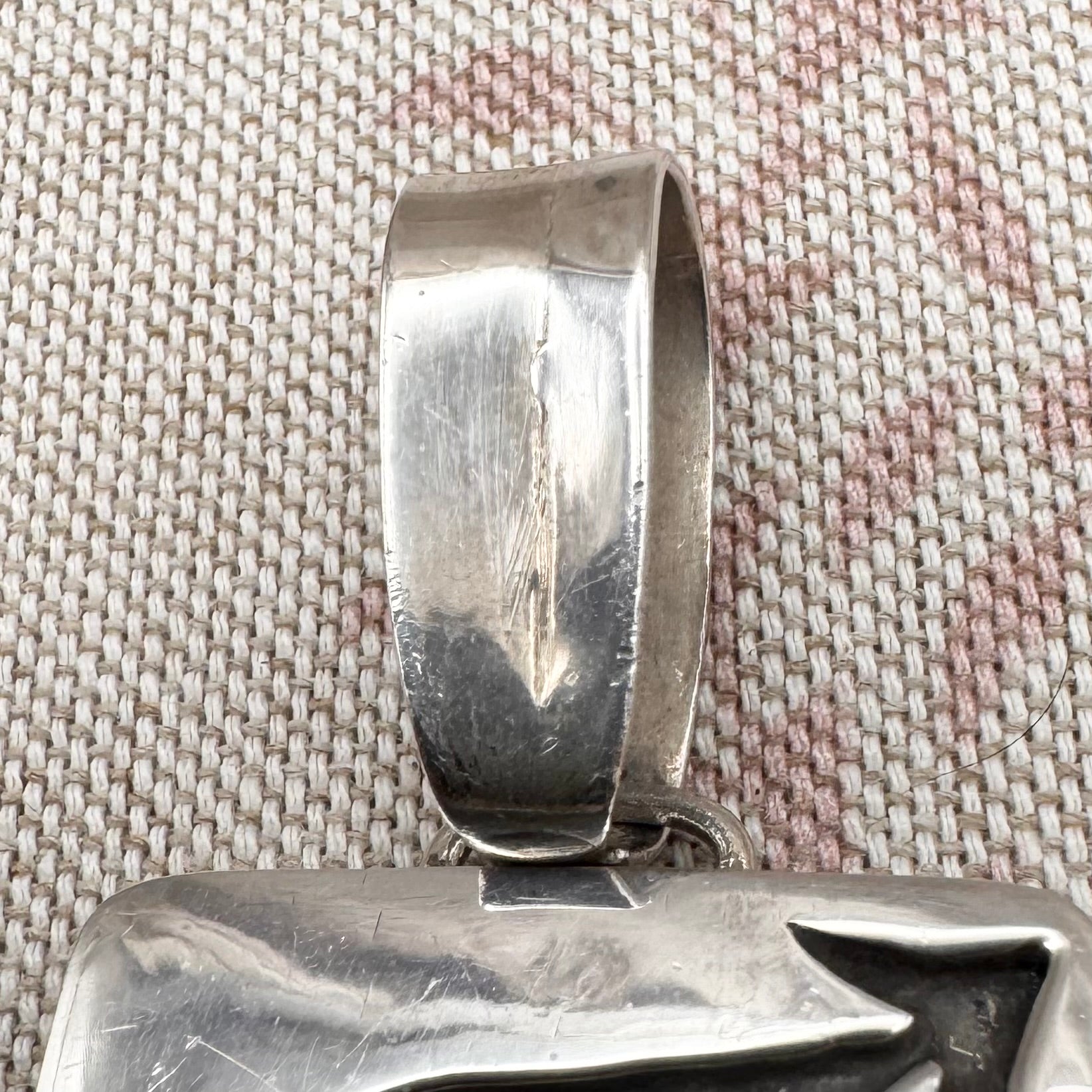 Large silver moonstone pendant with abstract arrow motif