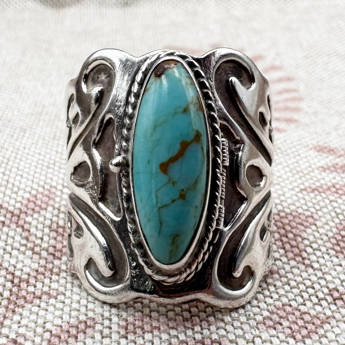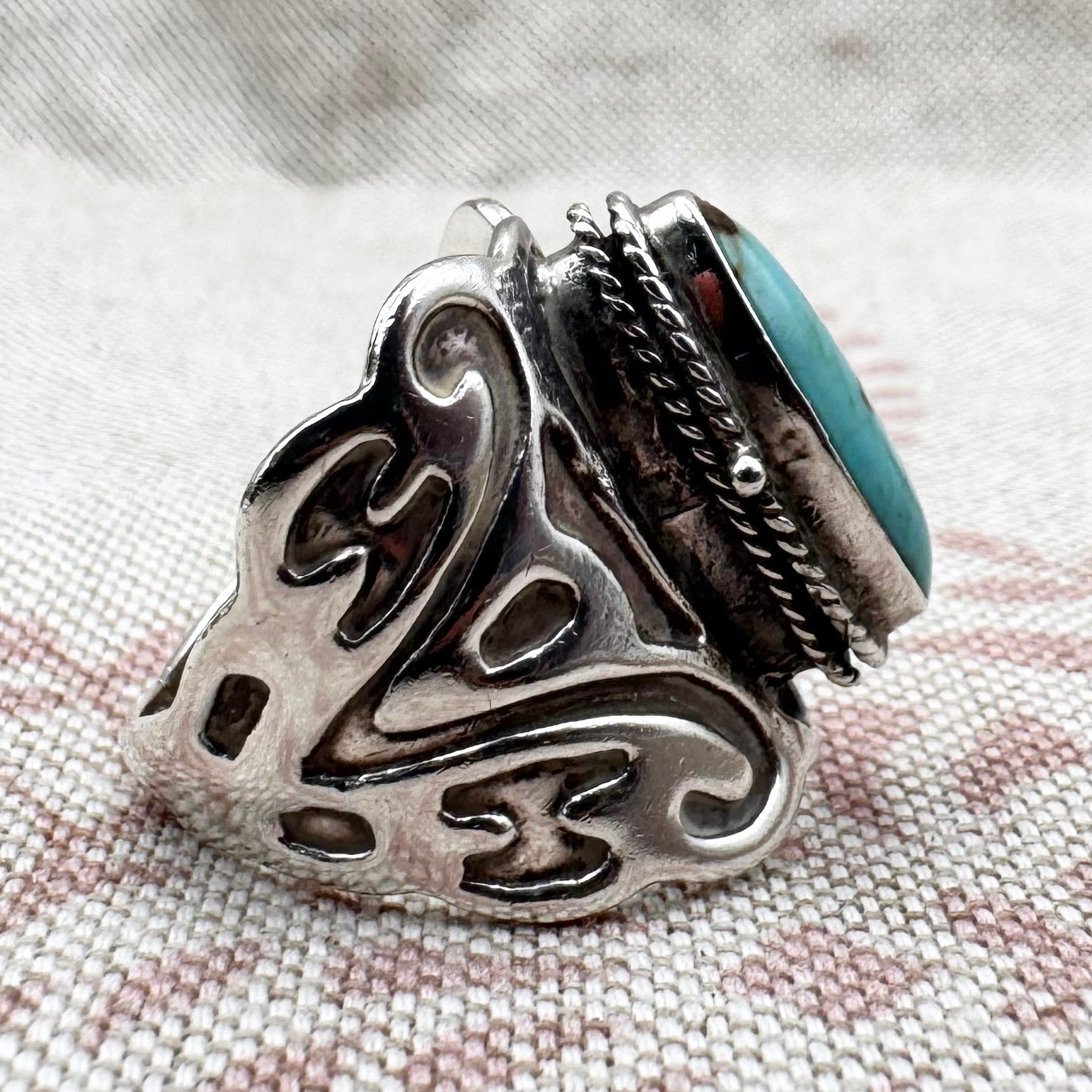 Mexican silver poison ring with turquoise, size S.5 (US 9.5)