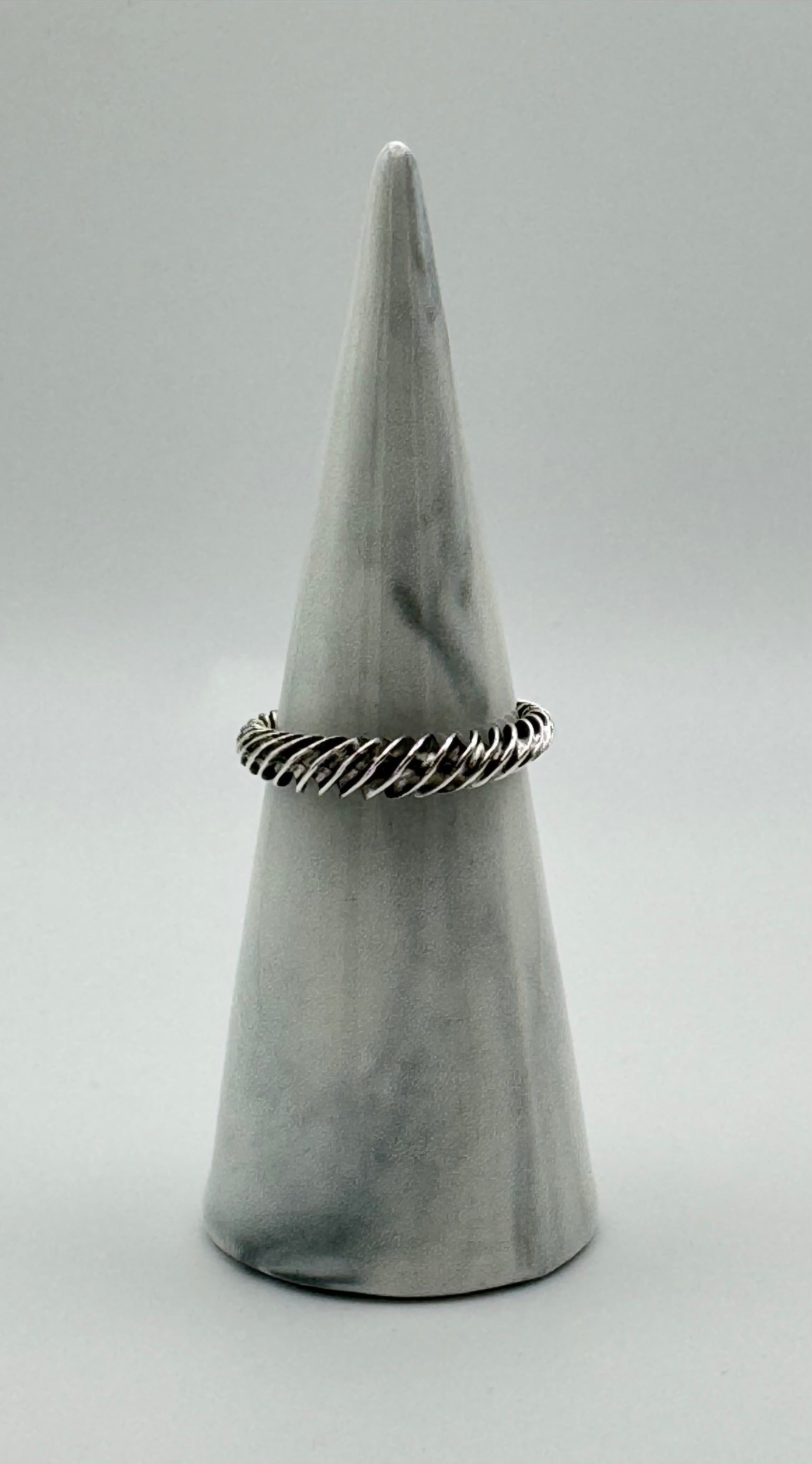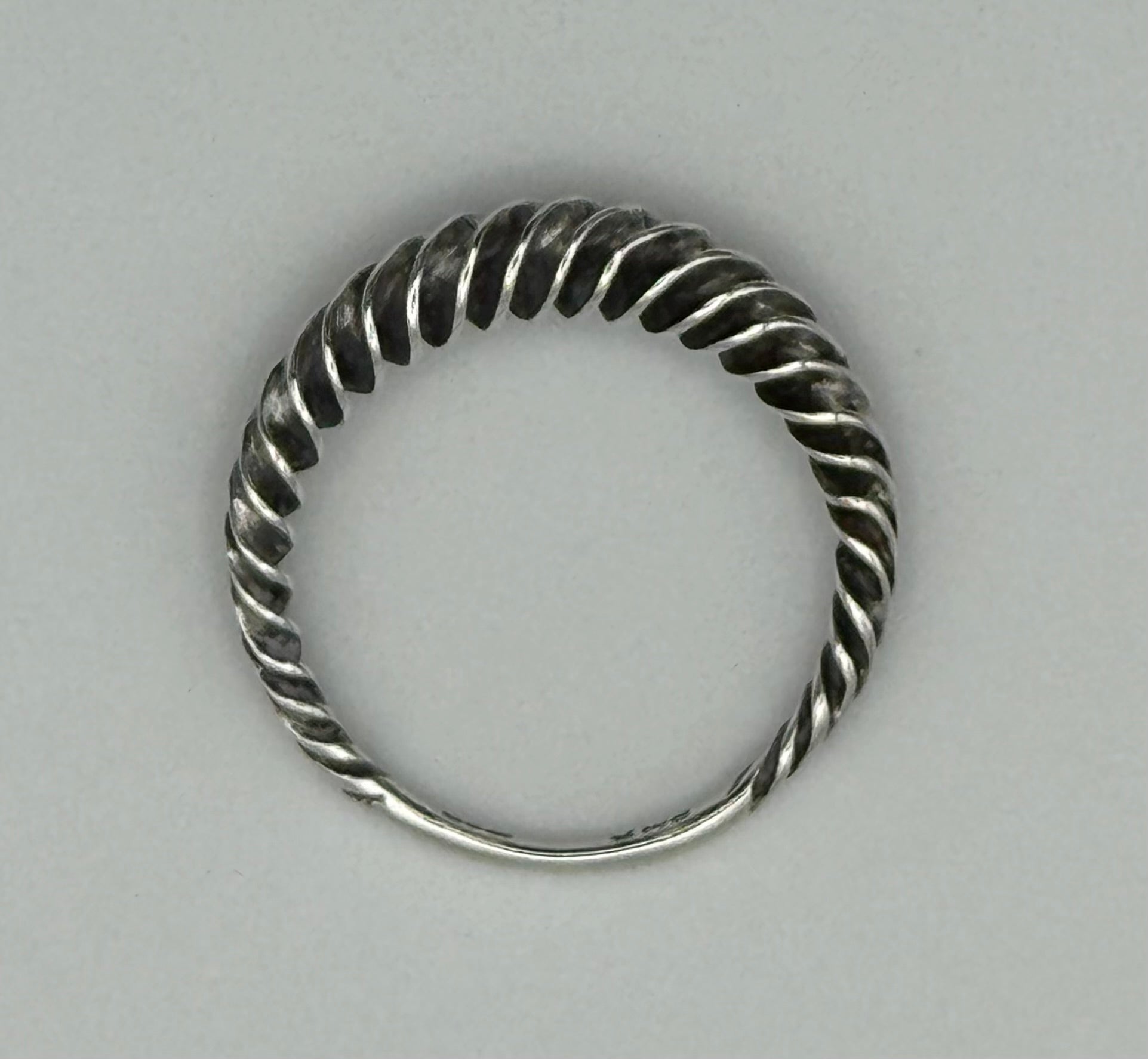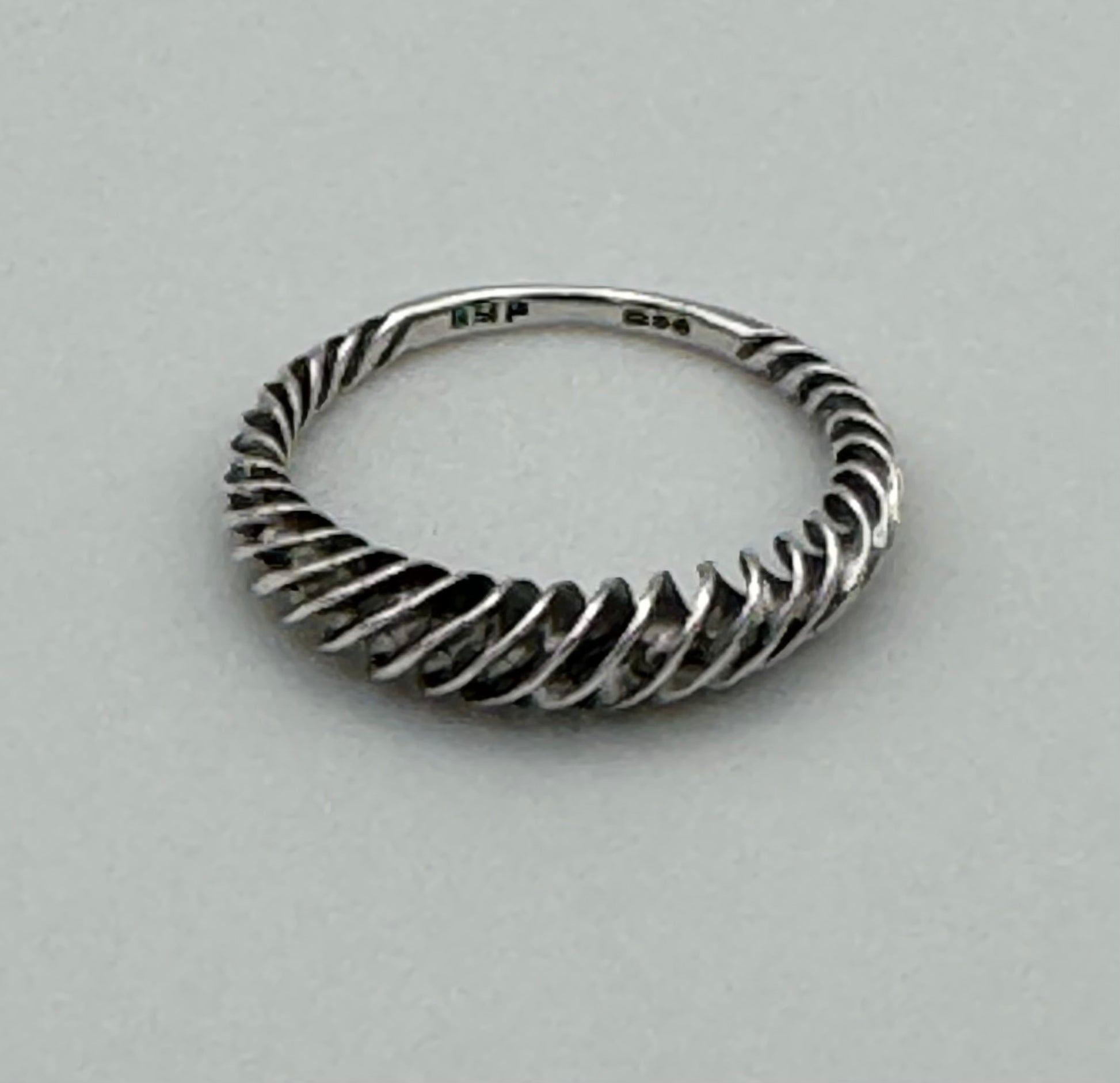 Funky spiral ring. Fully hallmarked for London 1984. Maker’s / sponsor’s mark ‘BMP’.