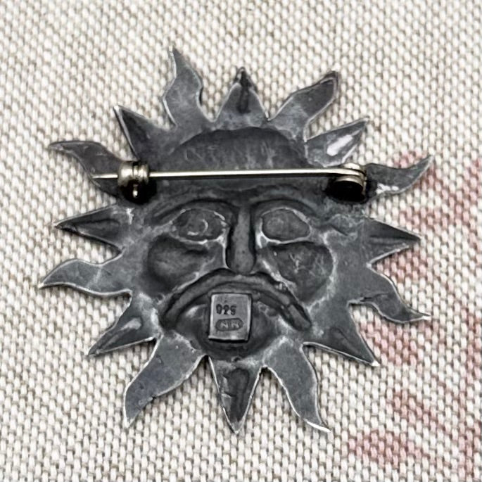 This handmade brooch features the classic Sun in Splendour design — a radiant symbol with roots in heraldry and history. The secure pin fastening is in perfect working order, making it easy to wear on jackets, scarves, hats, or bags. The detailed silverwork catches the light beautifully, giving the piece a bright, eye‑catching presence.