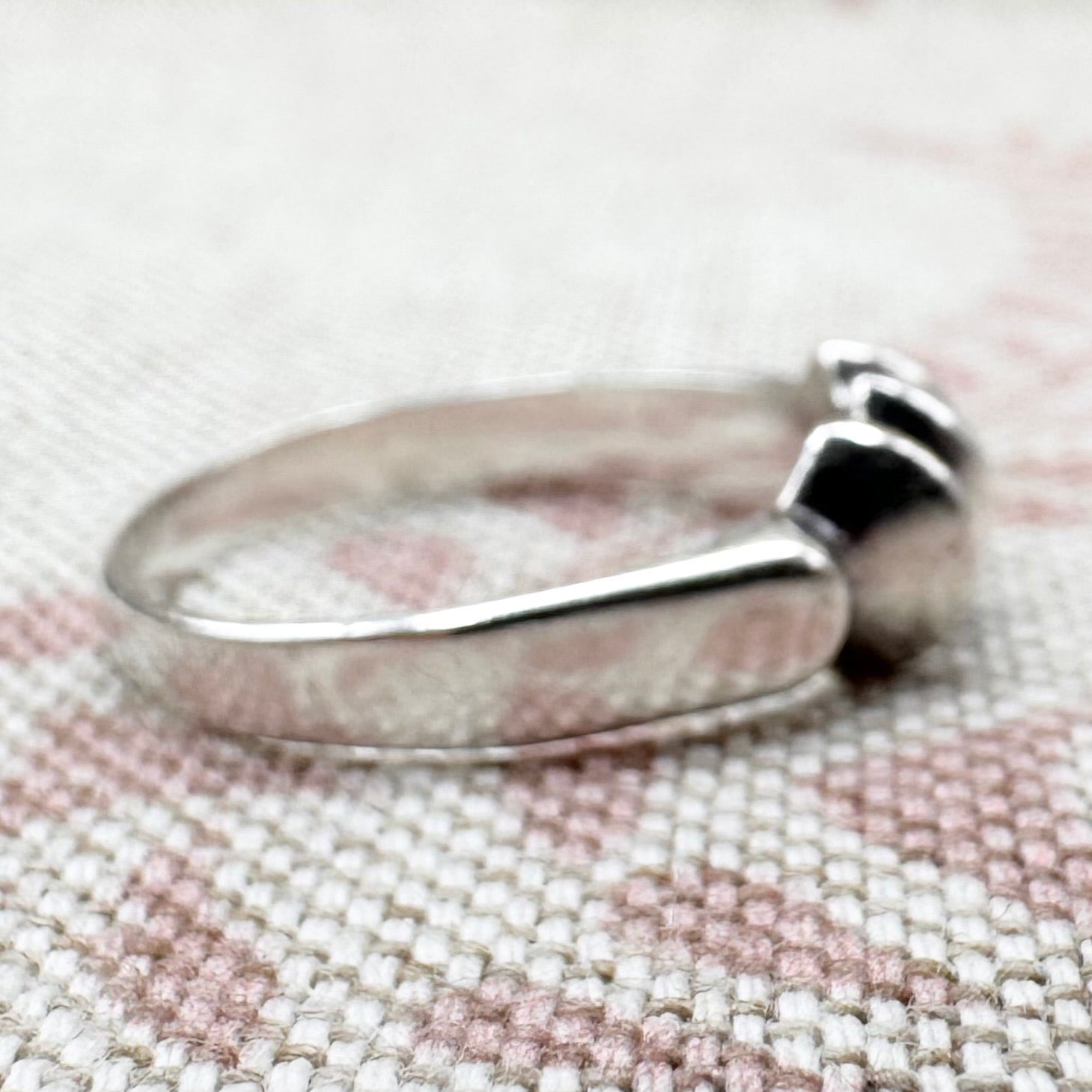 A vintage sterling silver ring featuring a row of three raised ridges across the front, giving the piece a spine-like, sculptural profile. The ridges taper smoothly into the narrower band, which is plain along the back.